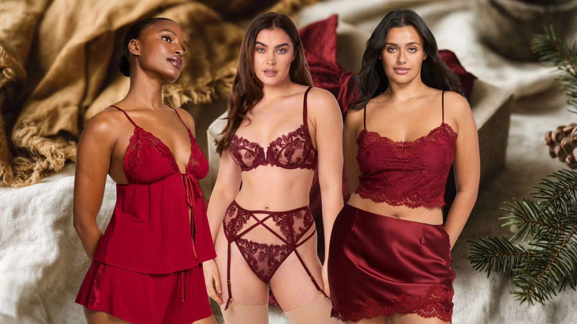 When choosing your outfits, remember it’s all about what makes you feel amazing. Whether you’re drawn to bold satin reds that make you look like the best gift under the tree, romantic lace that reminds you of the falling snow, or a soft blues that mimic the chill in the air, there’s something for everyone. Bodysuits are perfect for creating a sleek silhouette, while two-piece sets can show off your playful side. If you prefer a more casual or cozy feel, cozy sweaters, henley pajama sets, or even just your favorite pair of undies can feel just as empowering.